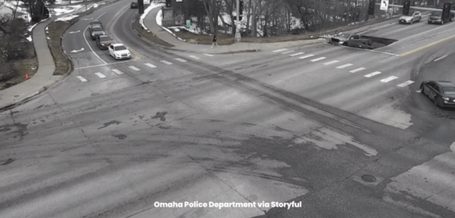 WATCH: Two cars fall into sinkhole at traffic light in Nebraska